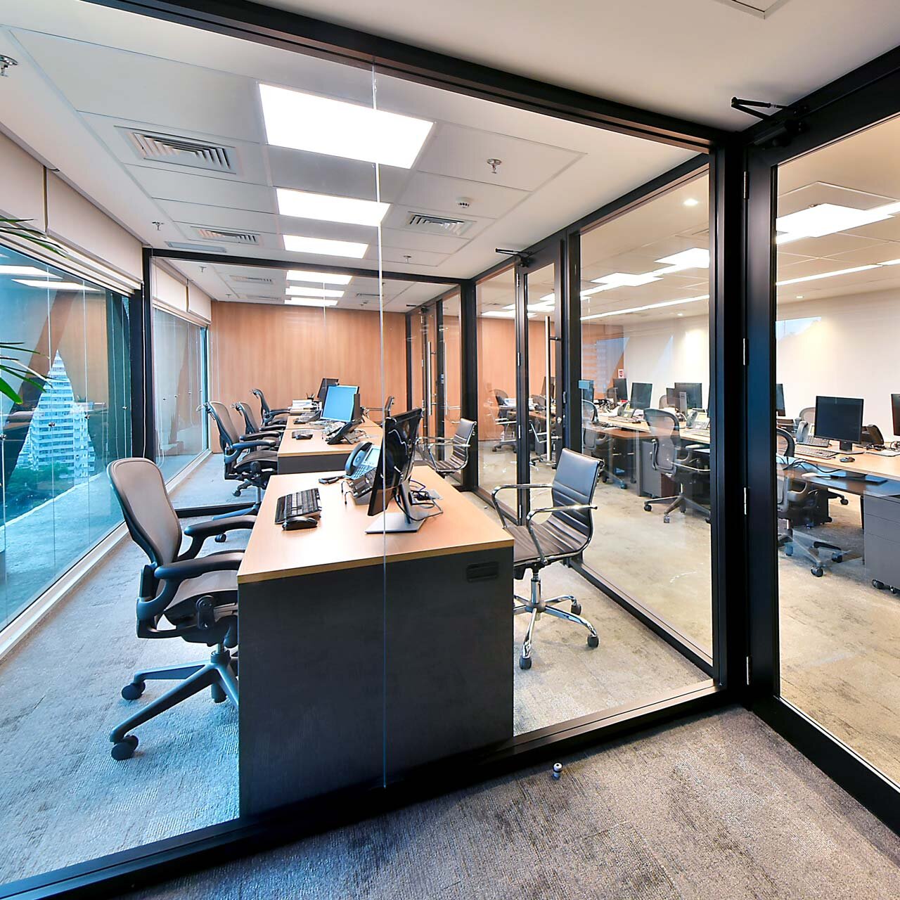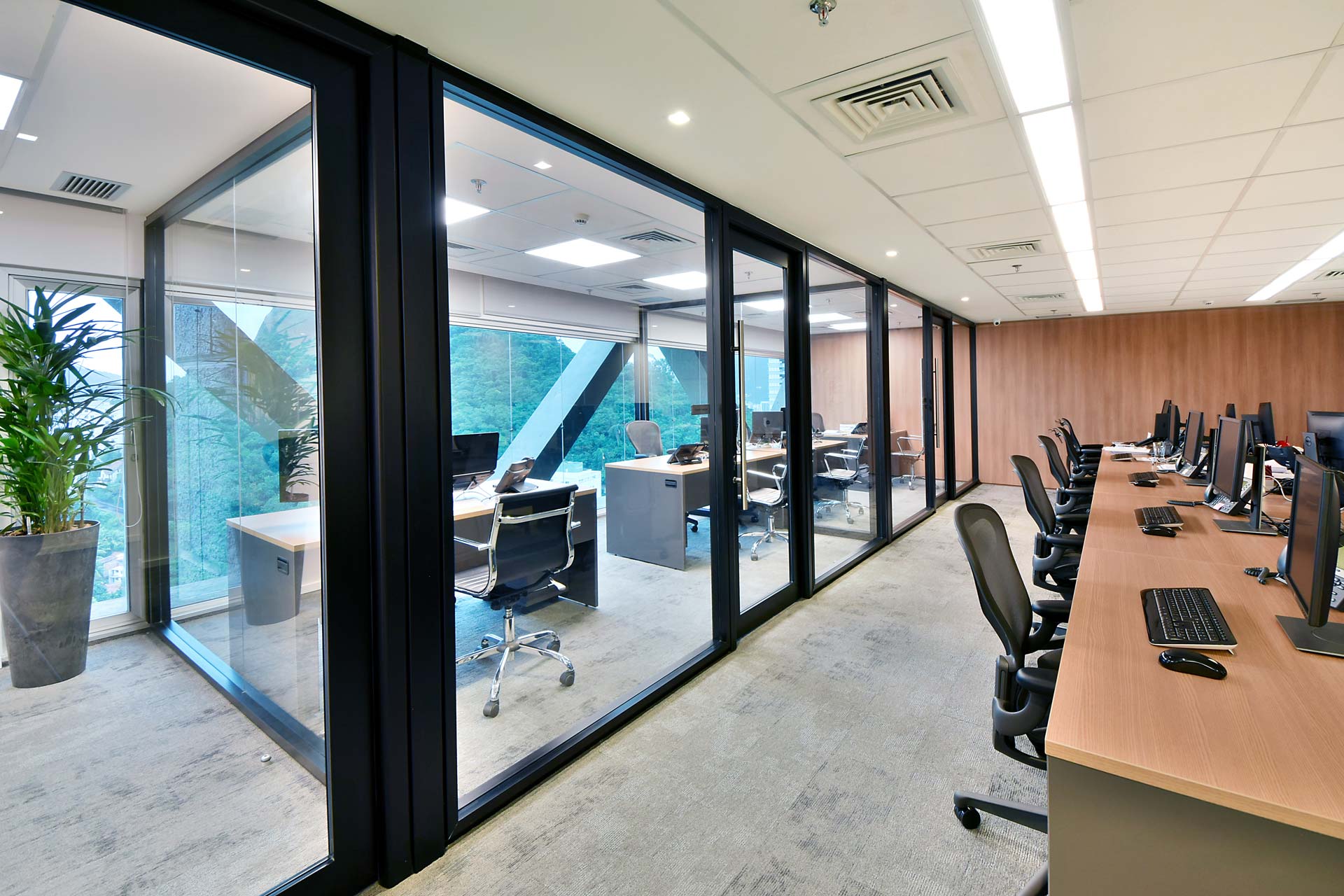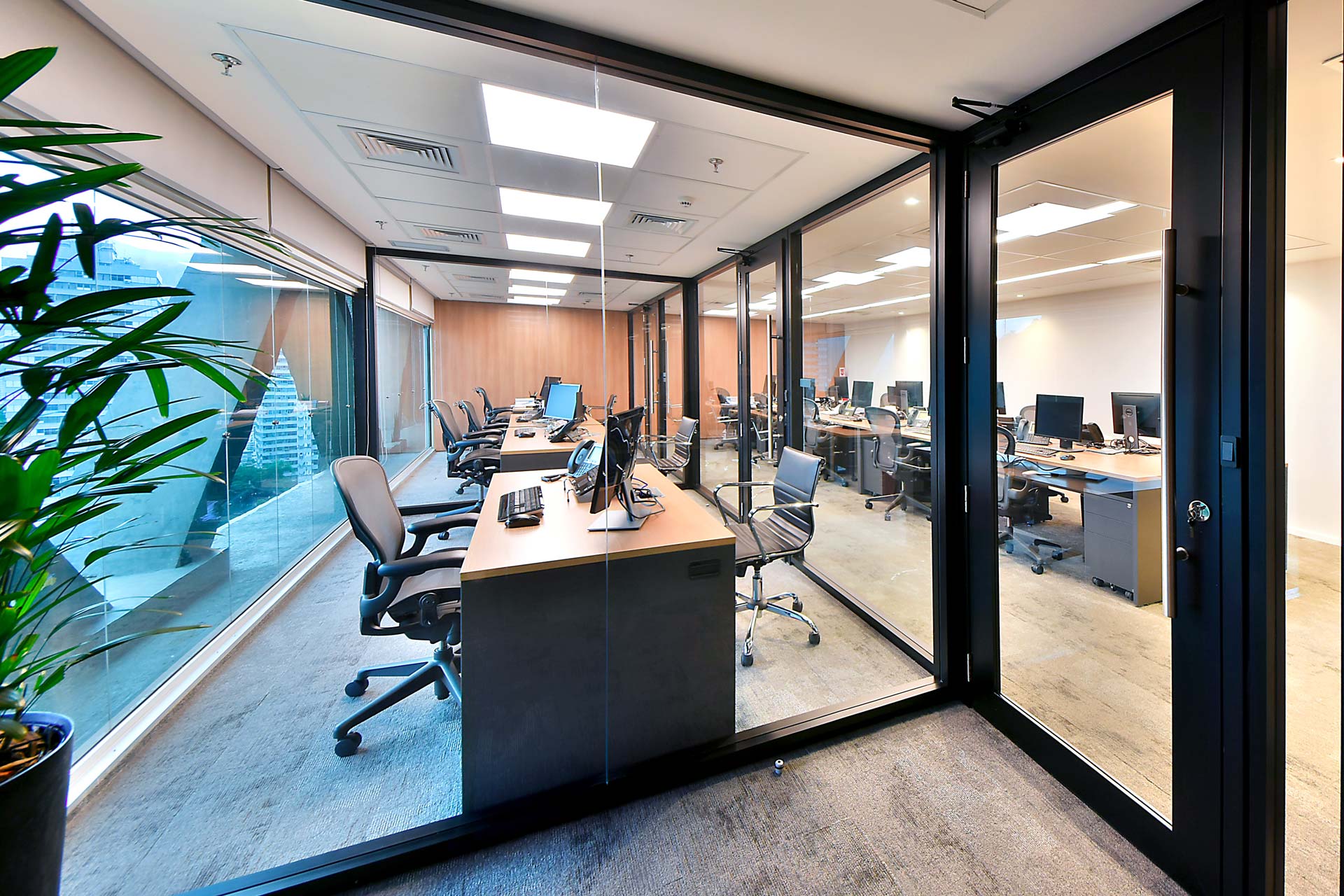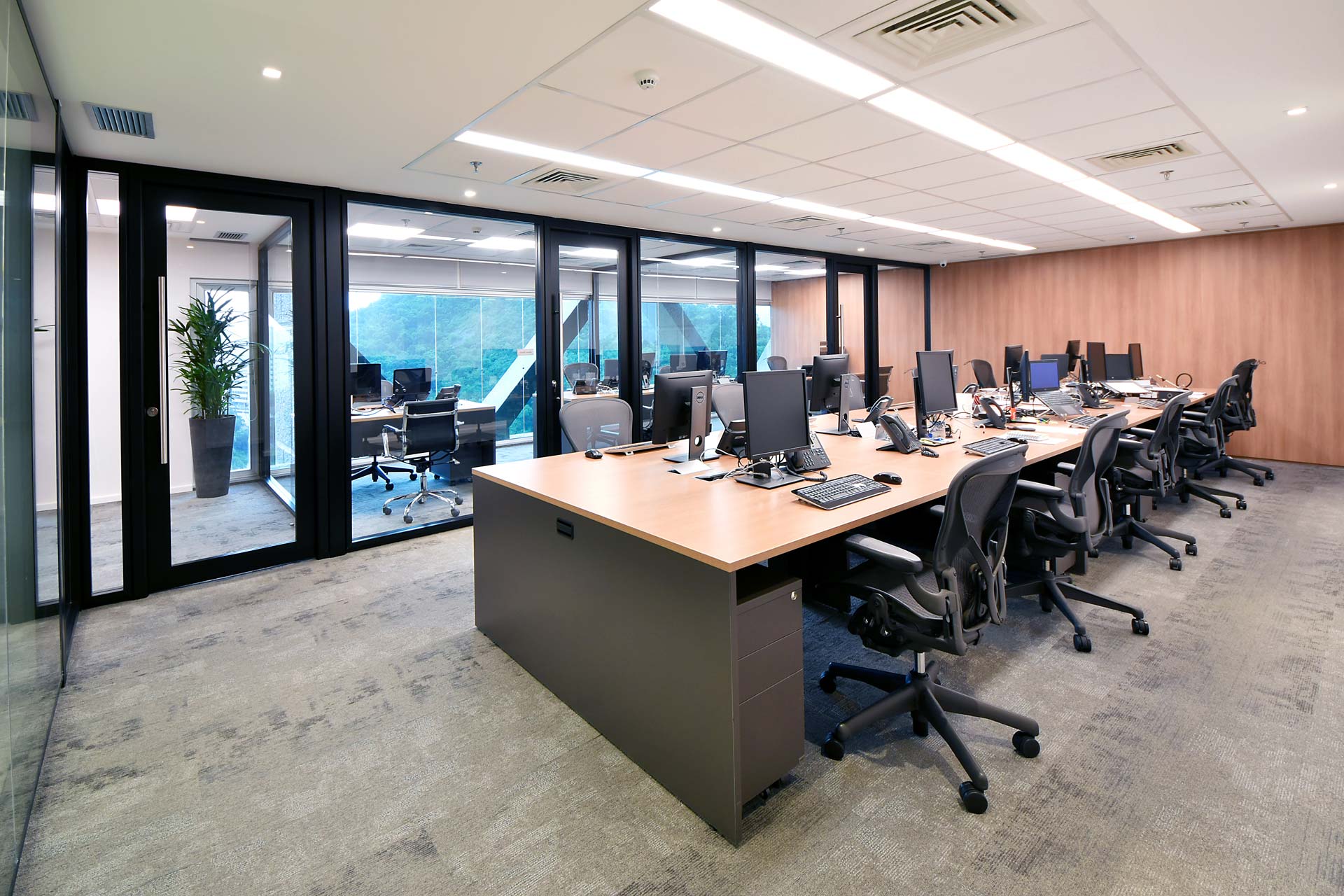 O projeto arquitetônico para os 300m² do escritório da Cascione Advogados na Torre do Rio Sul, no Rio de Janeiro, foi desenvolvido pelo Leblon Arquitetura.