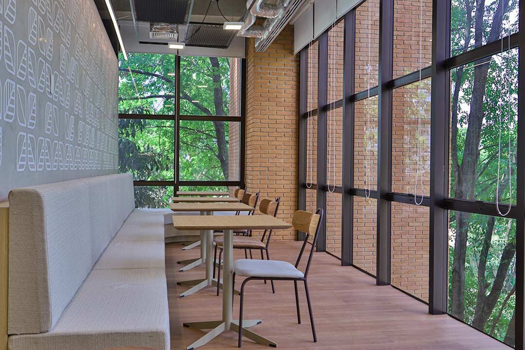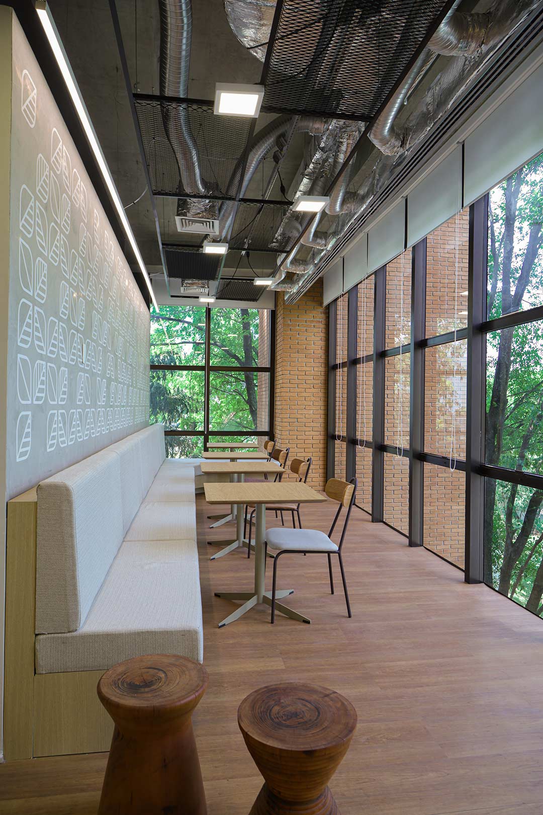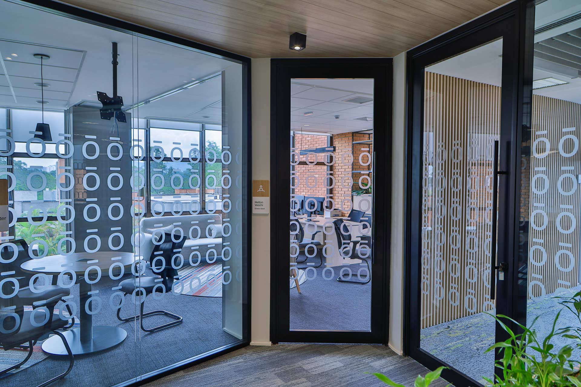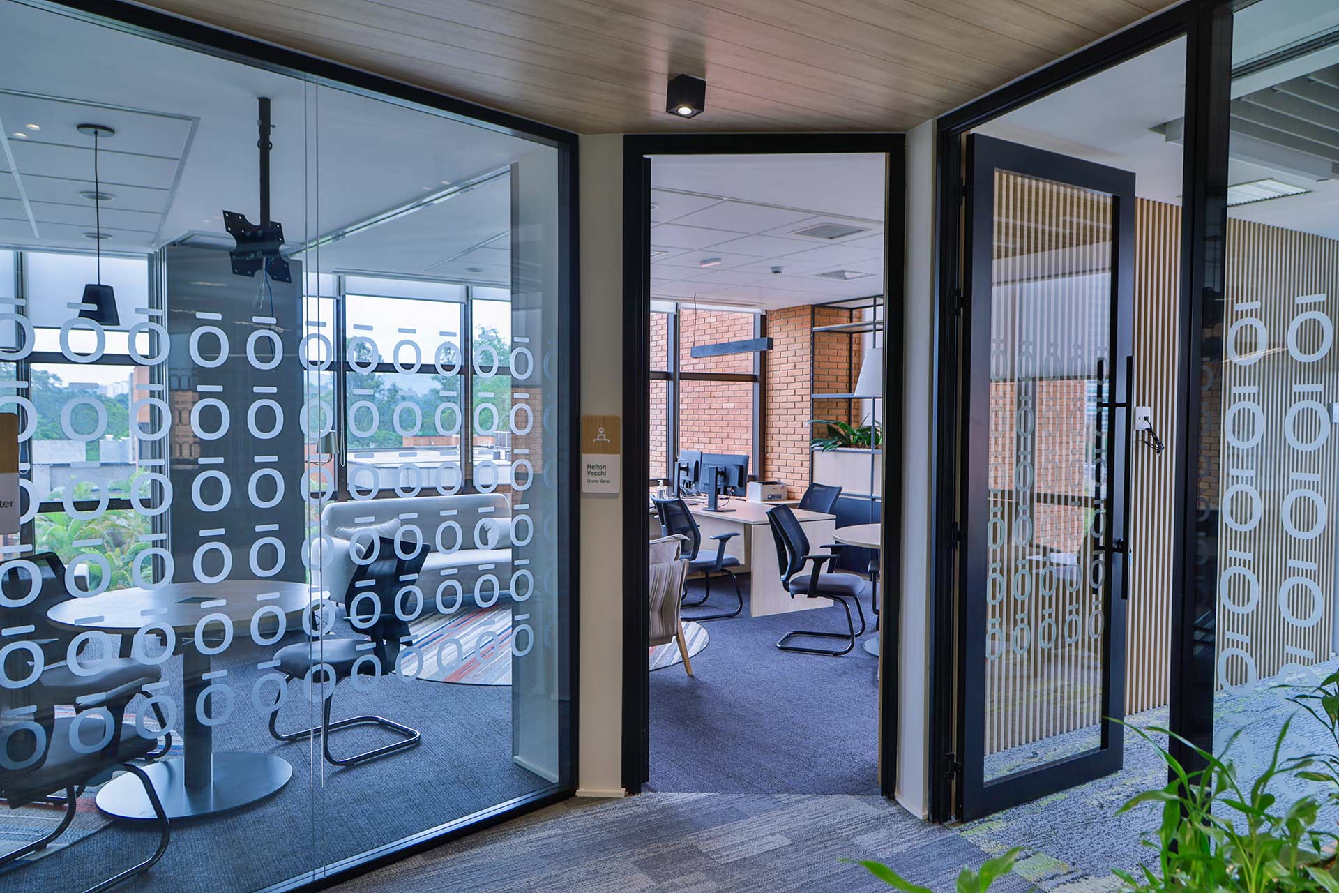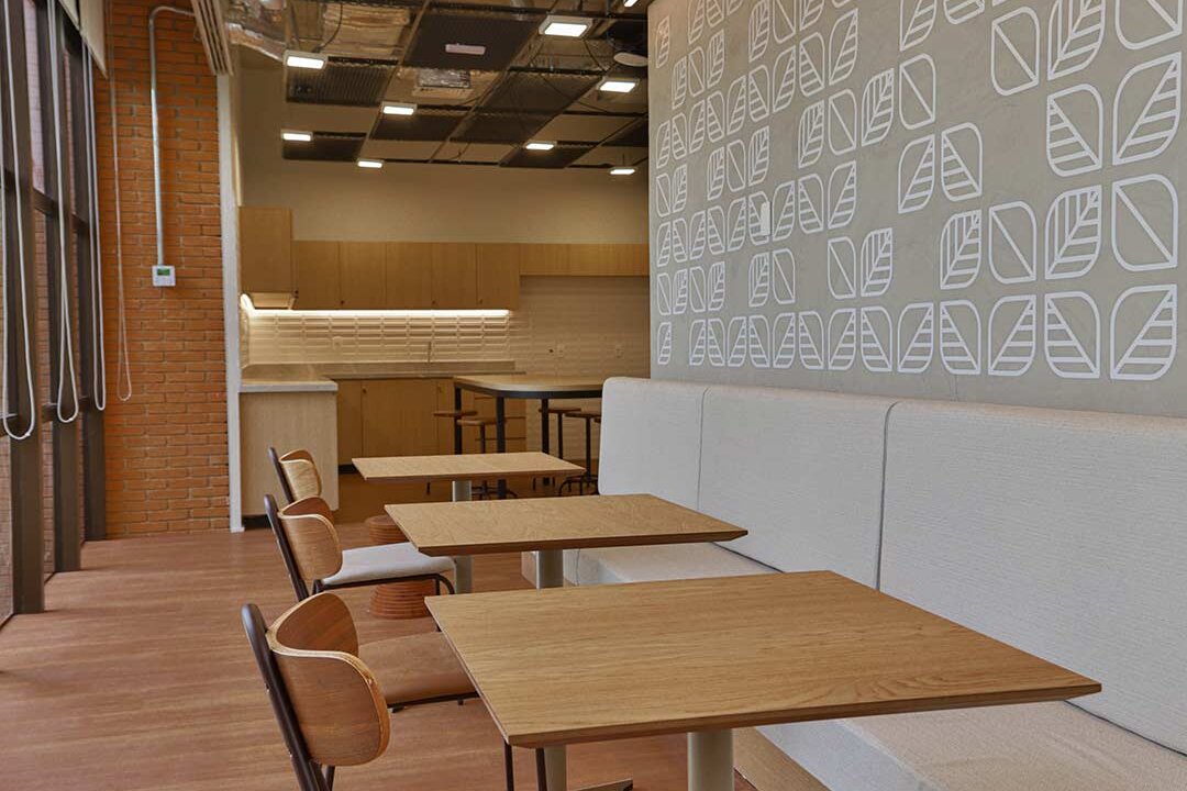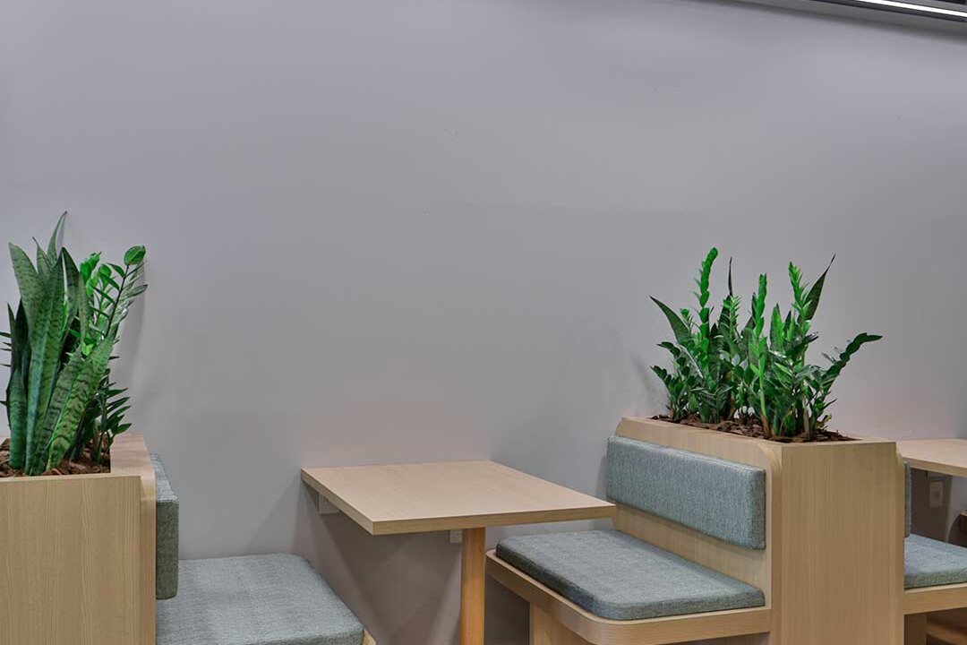 Projetado pela Pitá e ocupando todo o 2º pavimento de um edifício rodeado pelo verde das árvores e jardins, o escritório da dōTerra se expande por uma área de 1150m² na região empresarial de Alphaville (Barueri/SP).