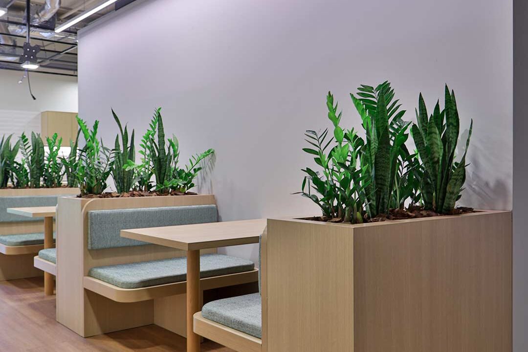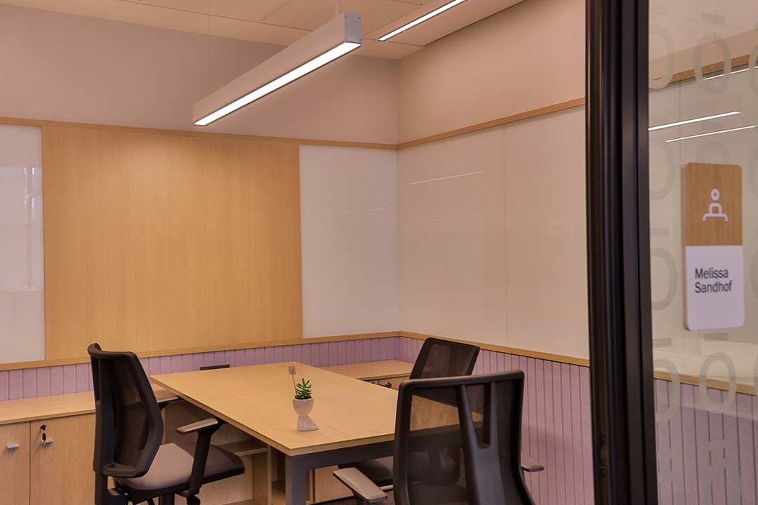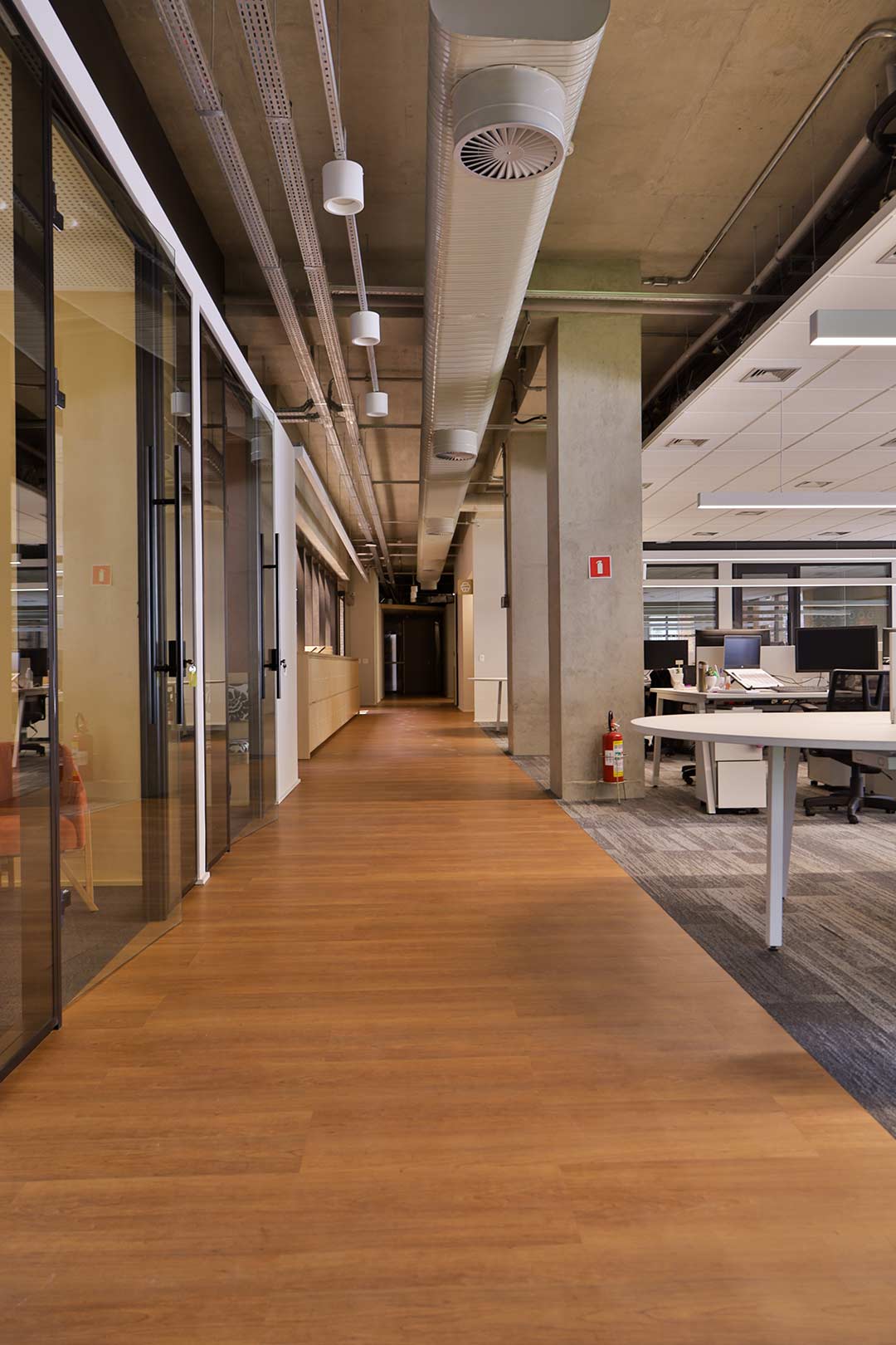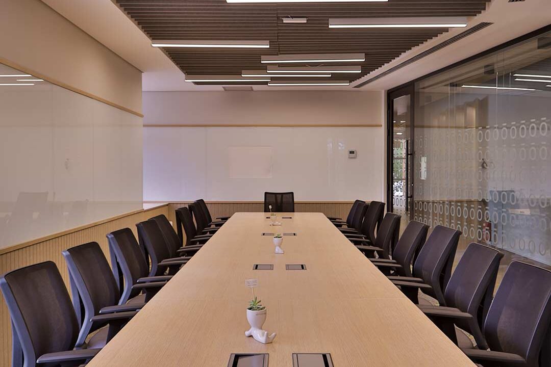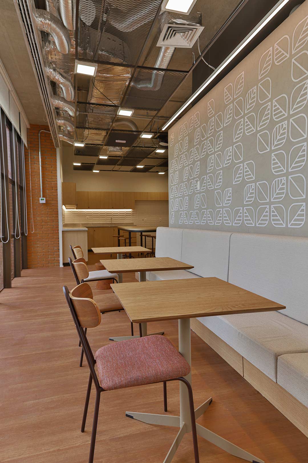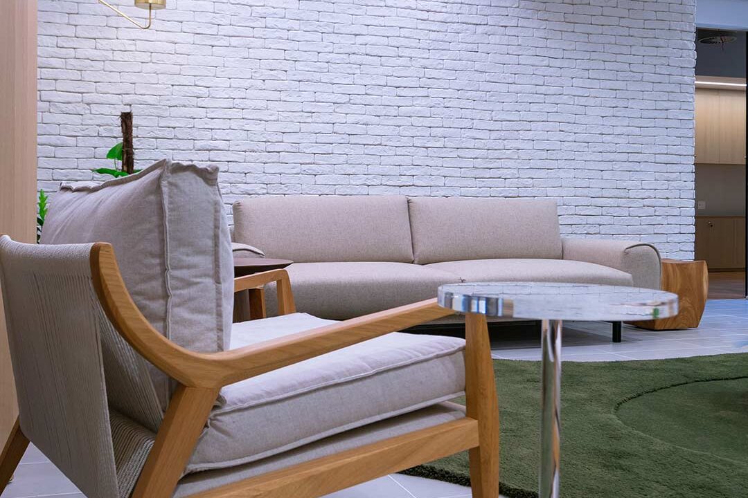 Projetado pela Pitá e ocupando todo o 2º pavimento de um edifício rodeado pelo verde das árvores e jardins, o escritório da dōTerra se expande por uma área de 1150m² na região empresarial de Alphaville (Barueri/SP).