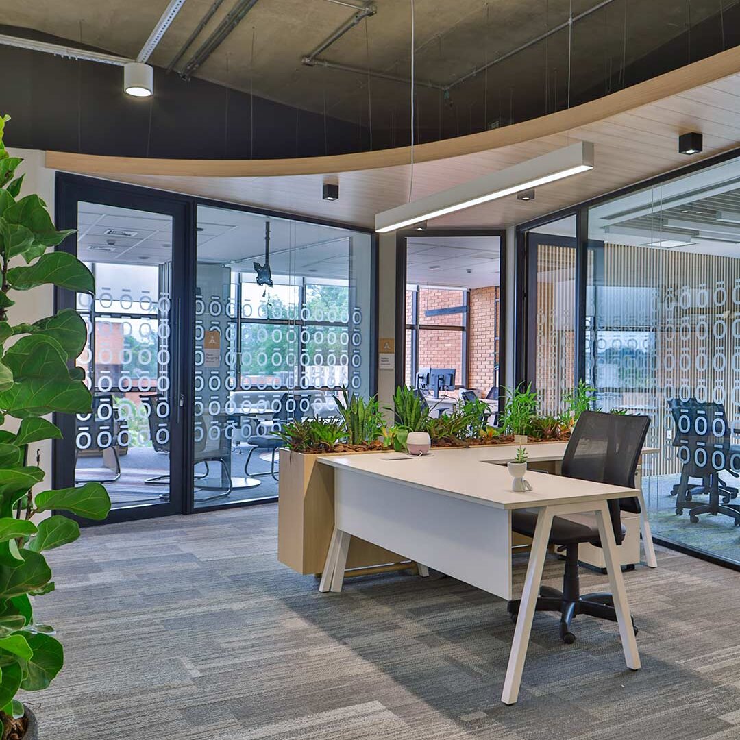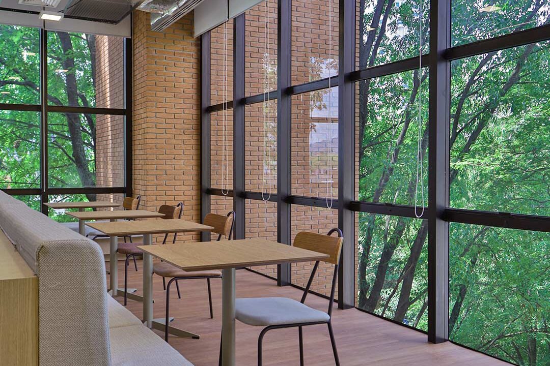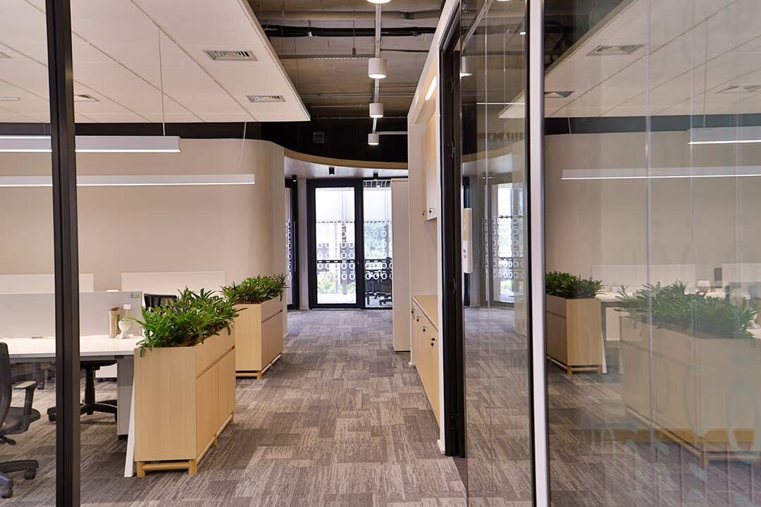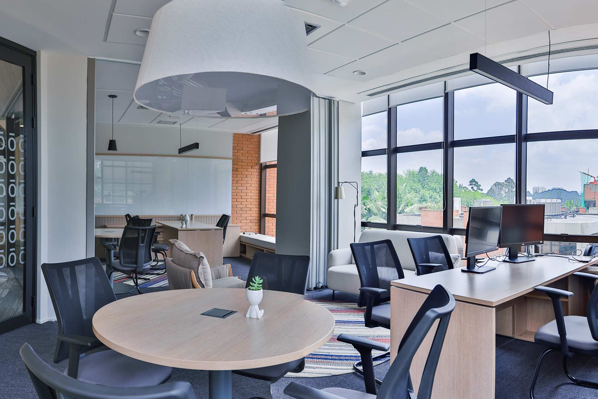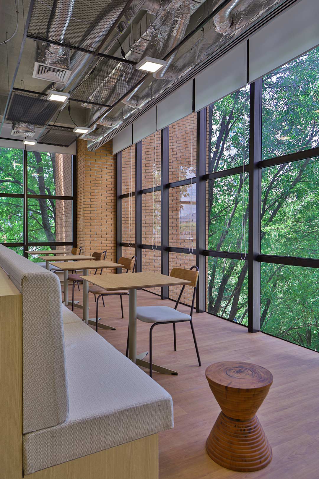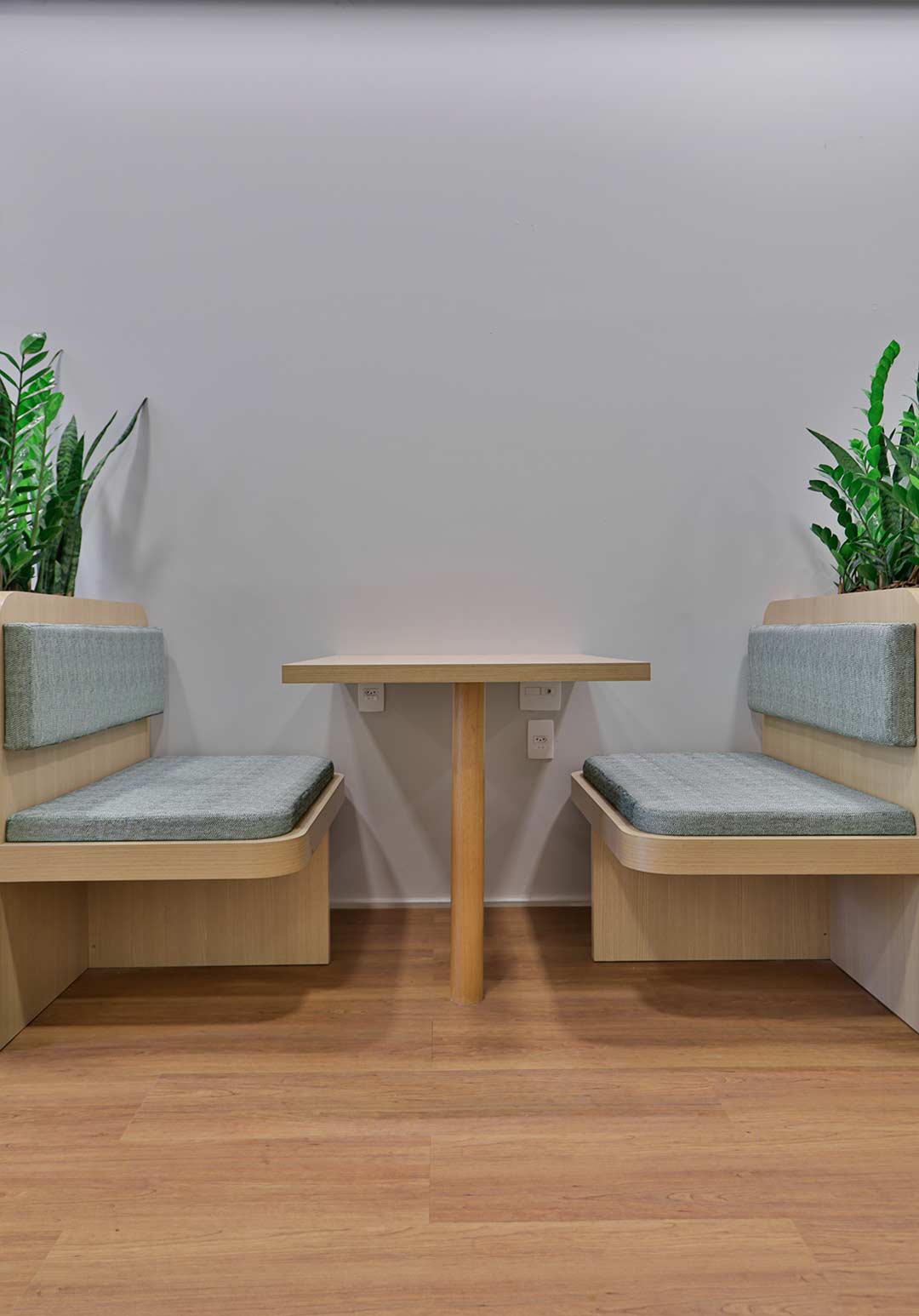 Projetado pela Pitá e ocupando todo o 2º pavimento de um edifício rodeado pelo verde das árvores e jardins, o escritório da dōTerra se expande por uma área de 1150m² na região empresarial de Alphaville (Barueri/SP).