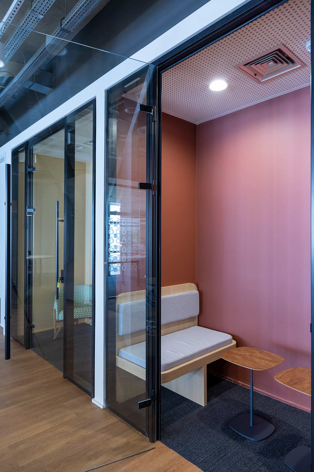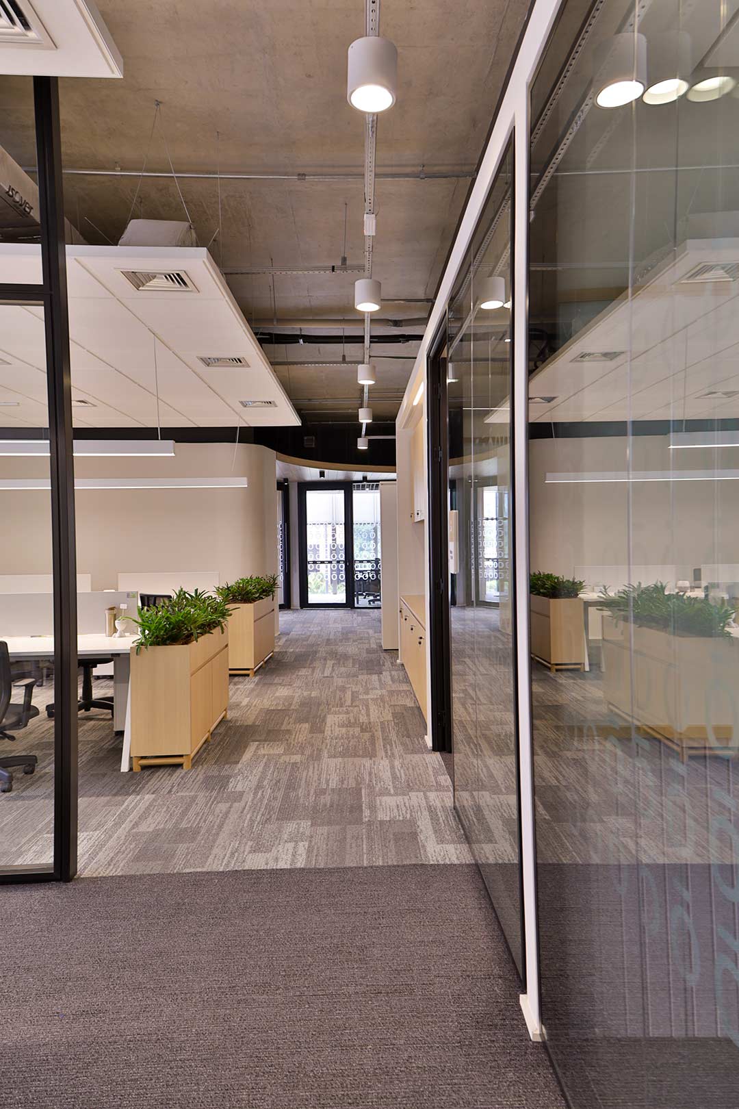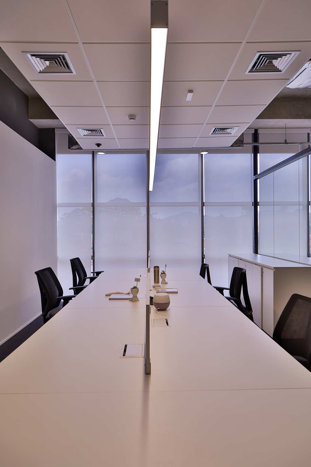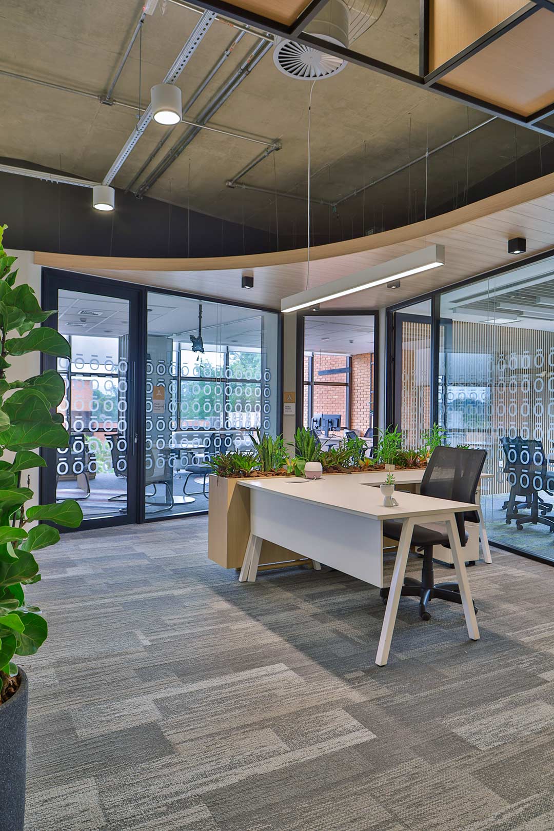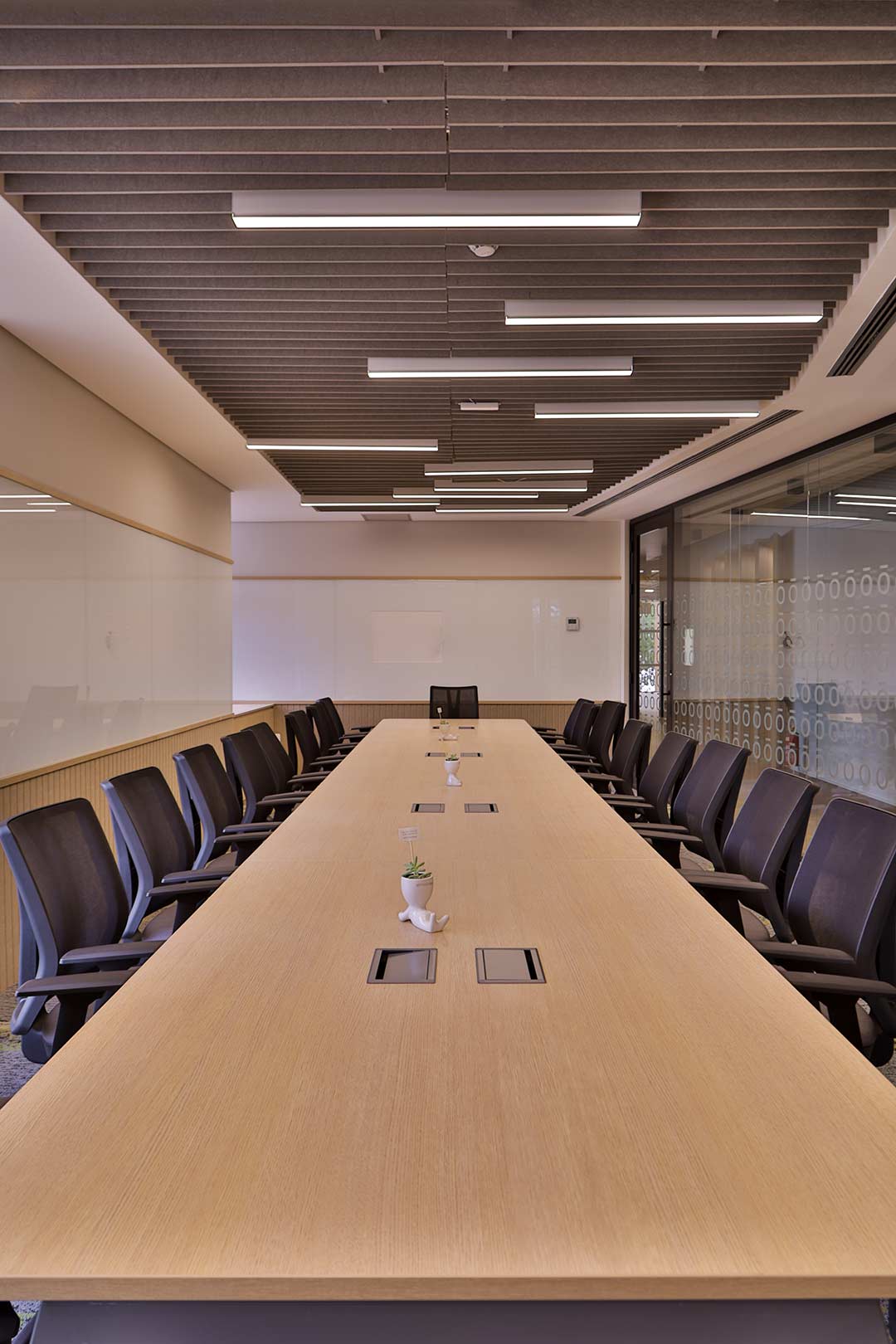 Projetado pela Pitá e ocupando todo o 2º pavimento de um edifício rodeado pelo verde das árvores e jardins, o escritório da dōTerra se expande por uma área de 1150m² na região empresarial de Alphaville (Barueri/SP).