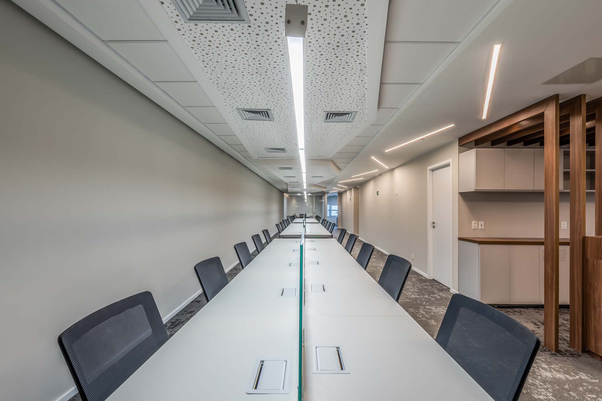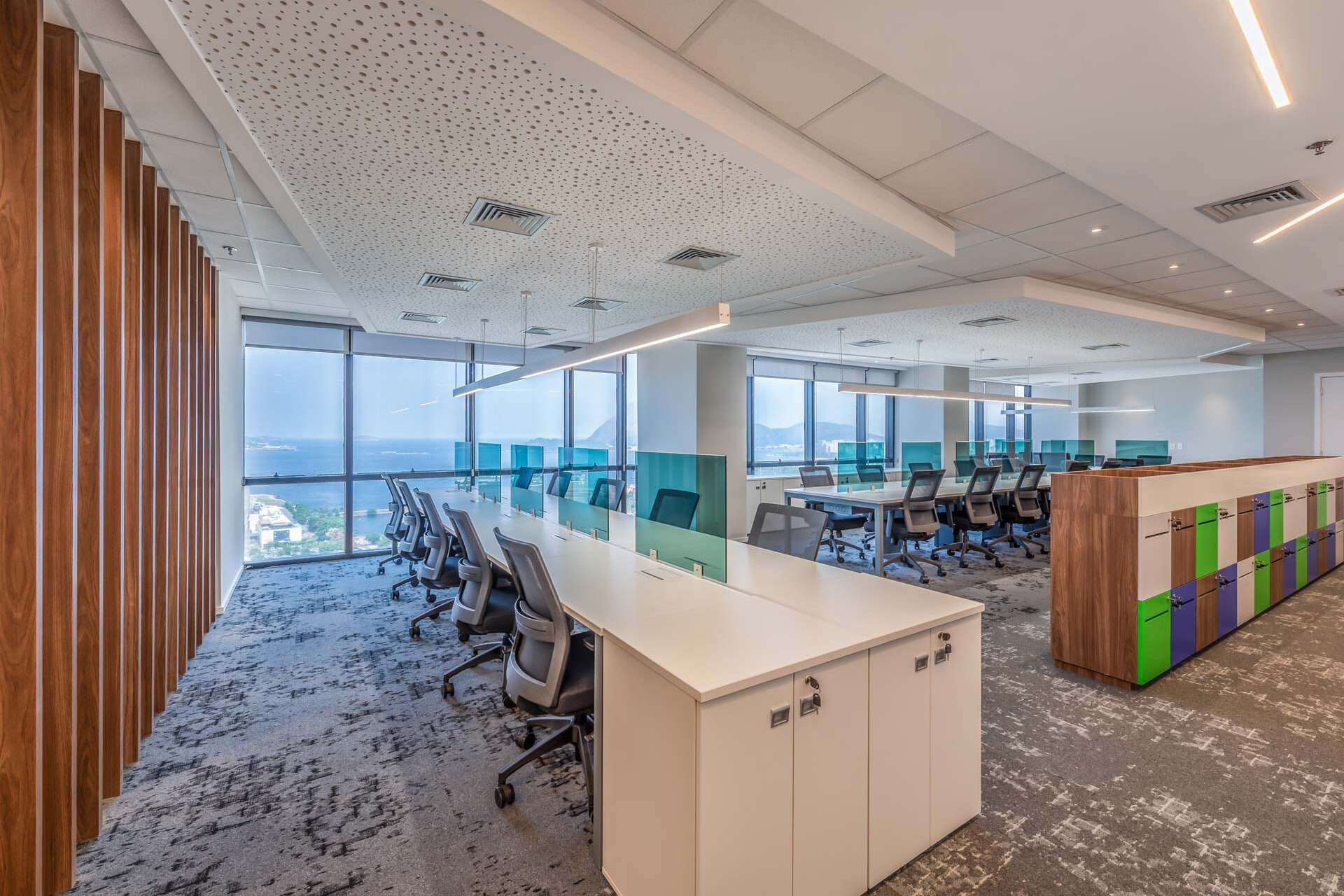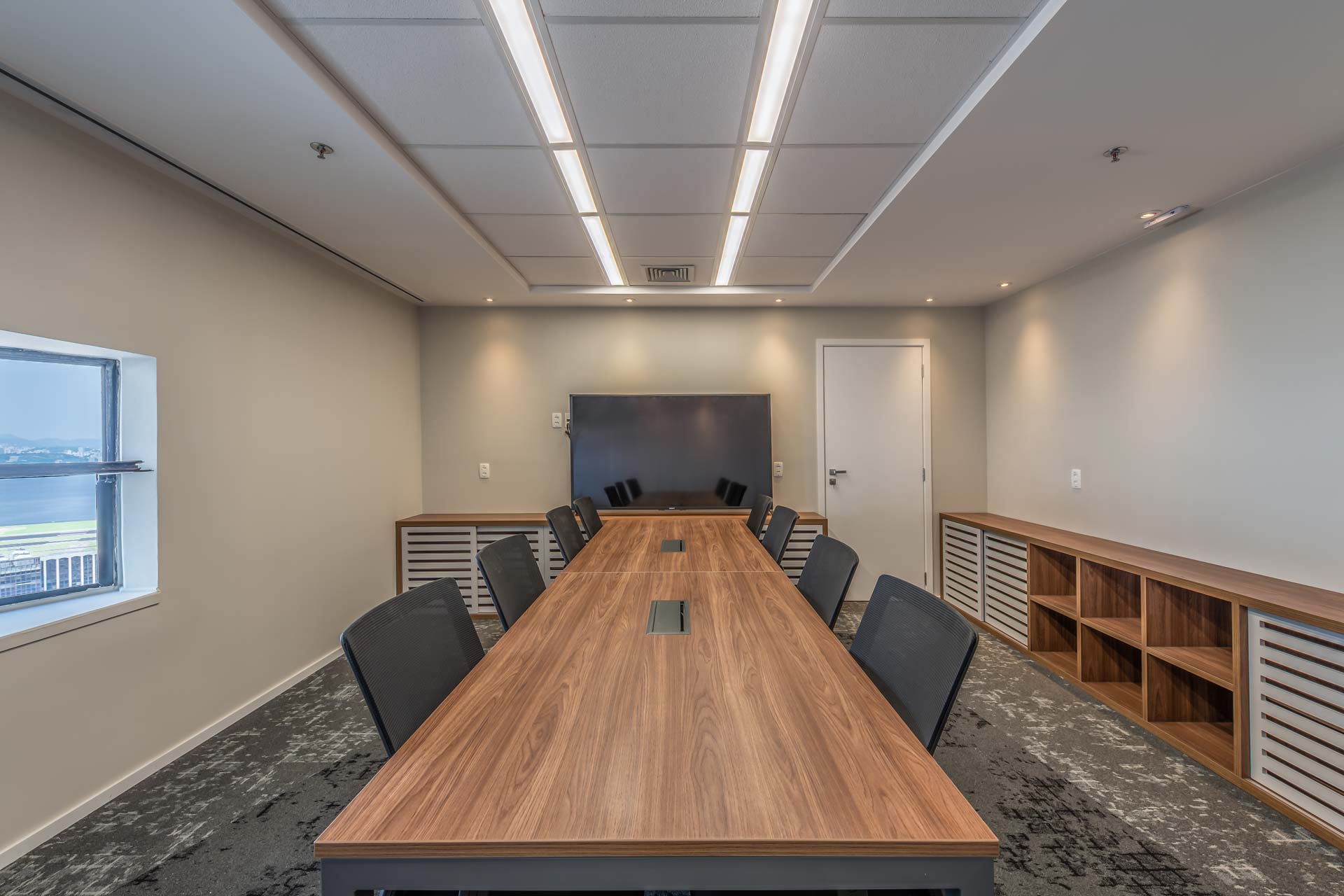 O projeto para os 450m² de intervenção no escritório corporativo da ESBR, no centro do Rio, foi desenvolvido pelo Marcio Aurelio Cunha Arquitetura.