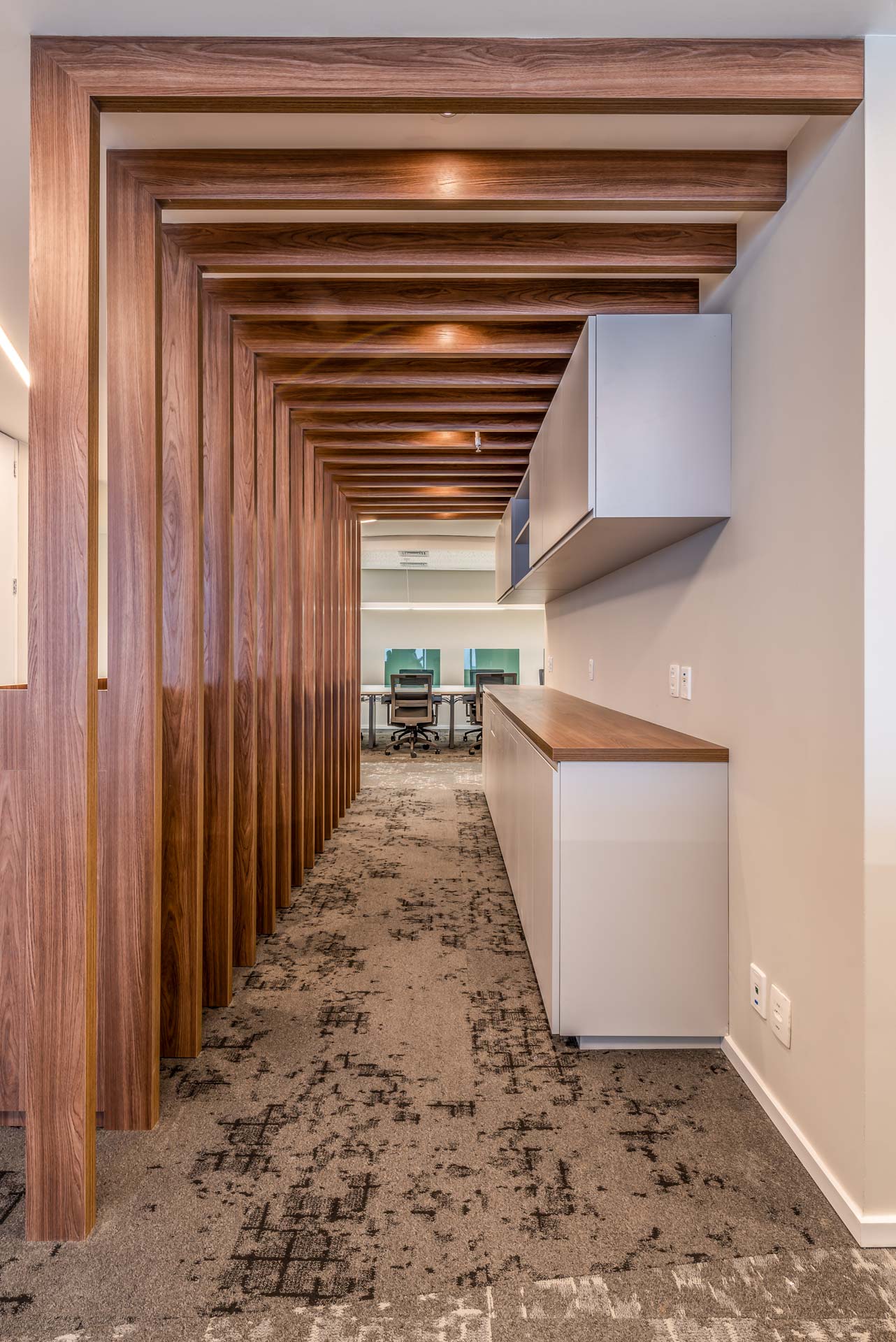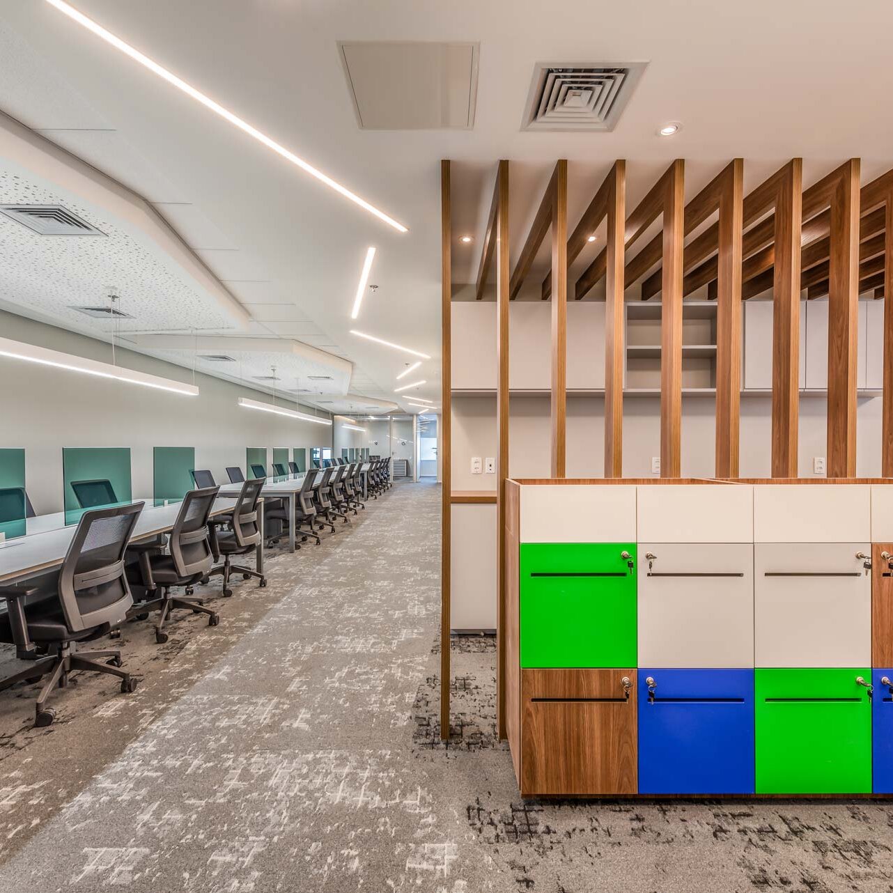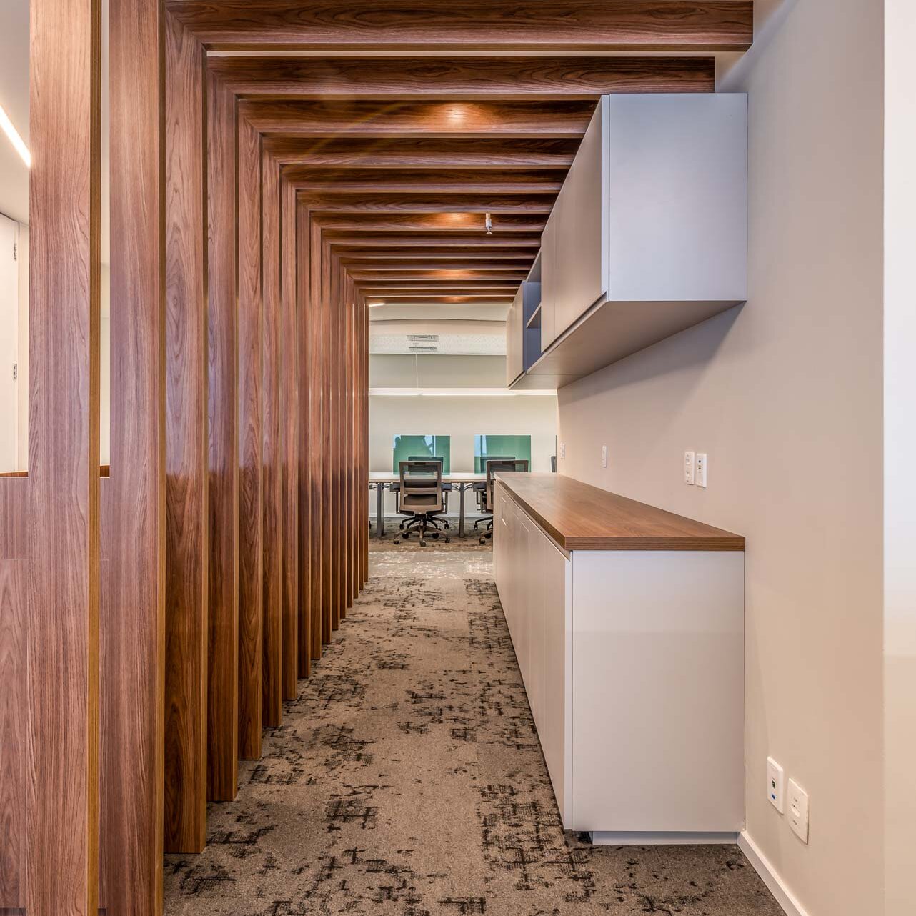 O projeto para os 450m² de intervenção no escritório corporativo da ESBR, no centro do Rio, foi desenvolvido pelo Marcio Aurelio Cunha Arquitetura.