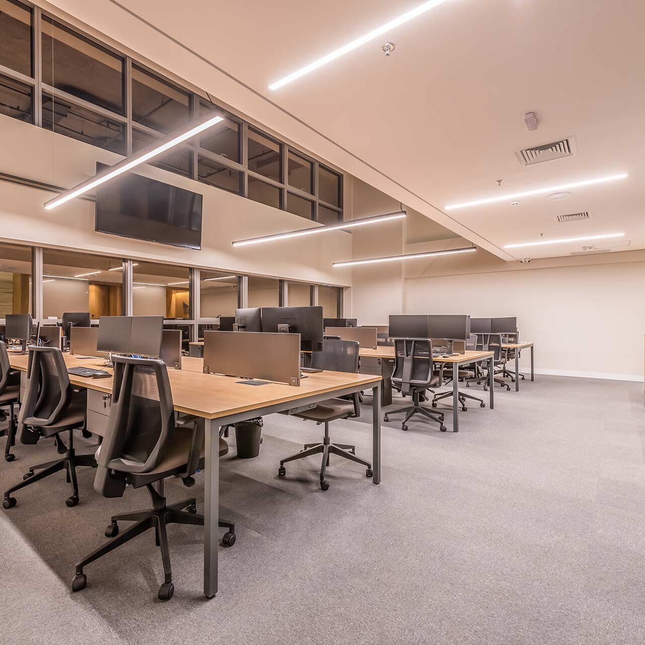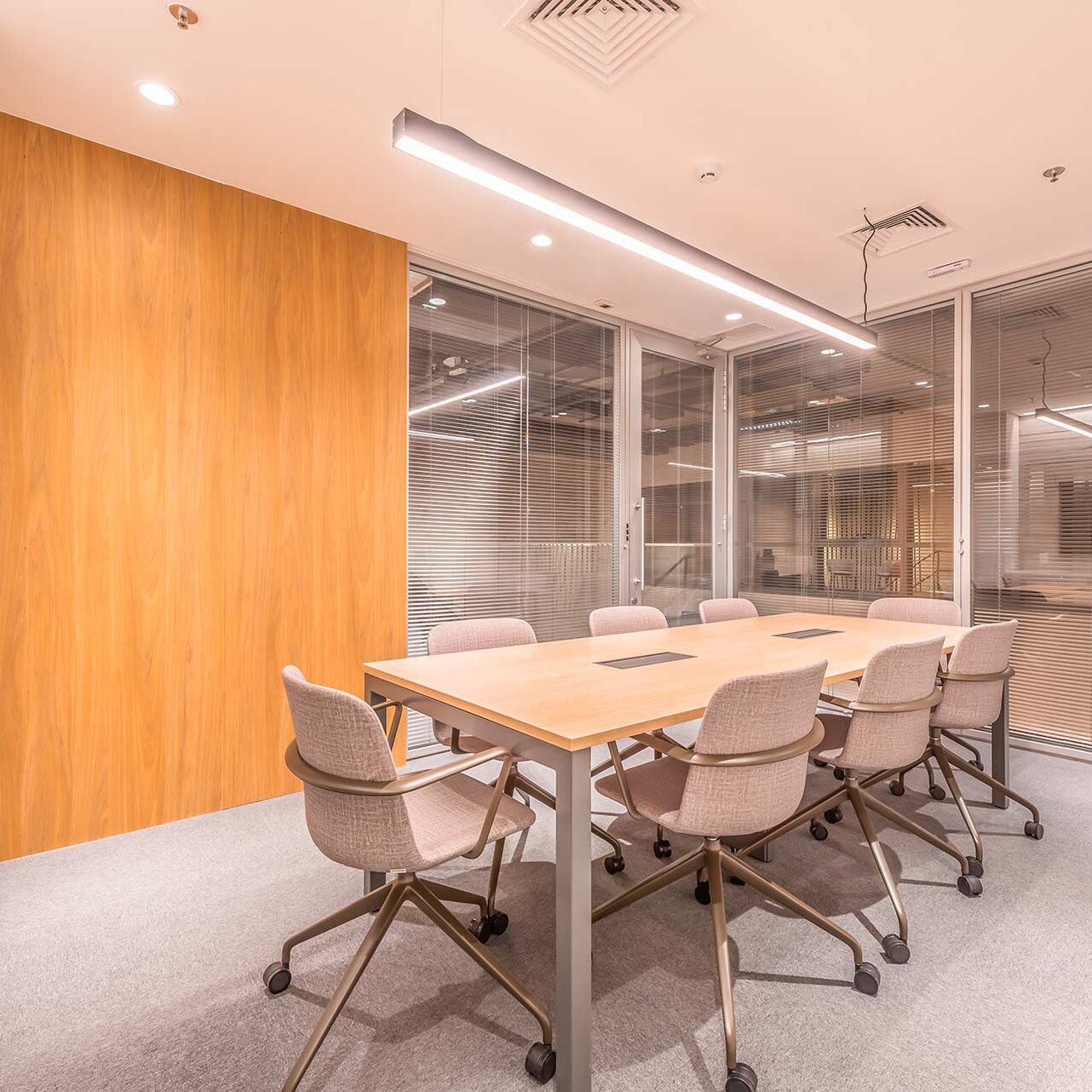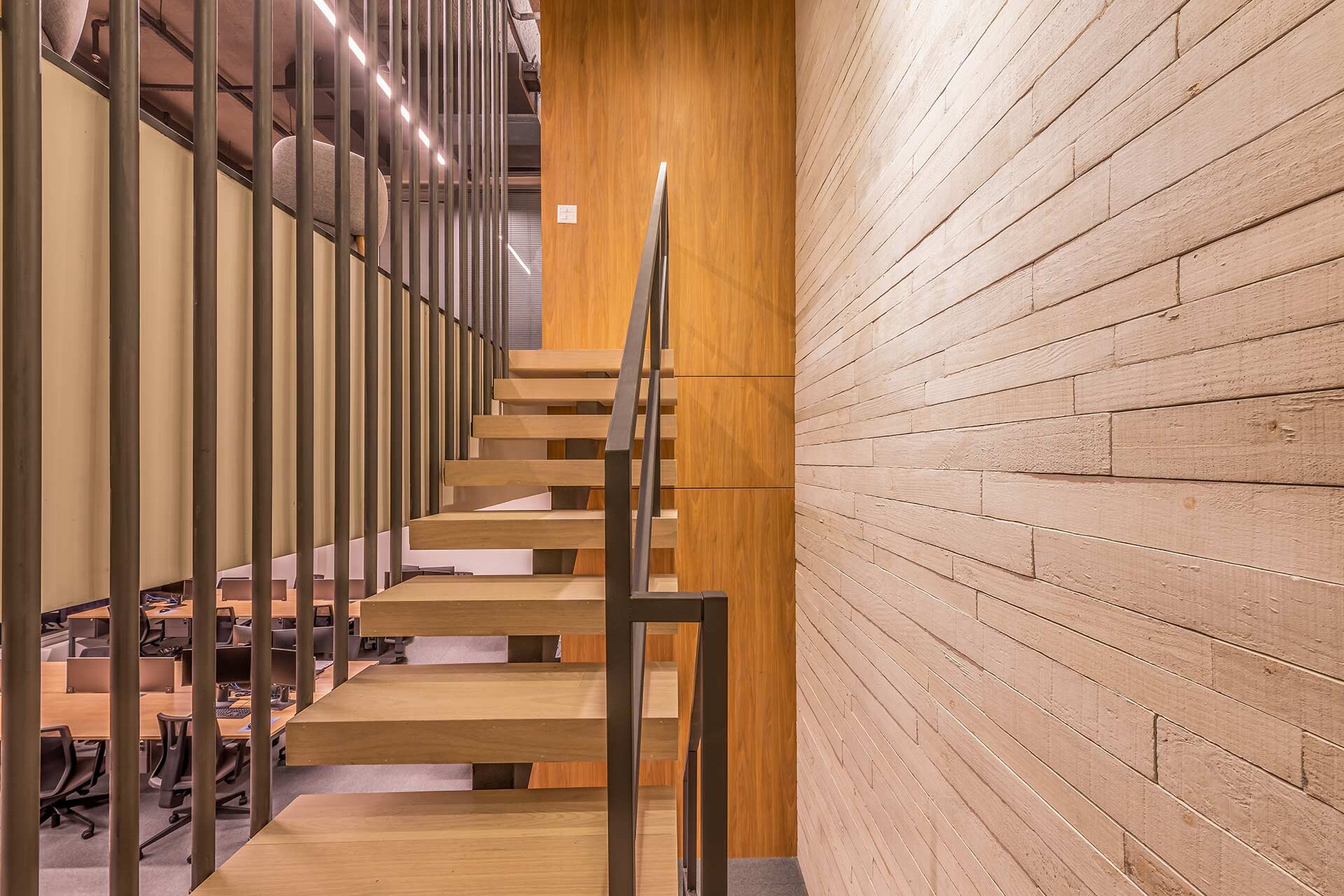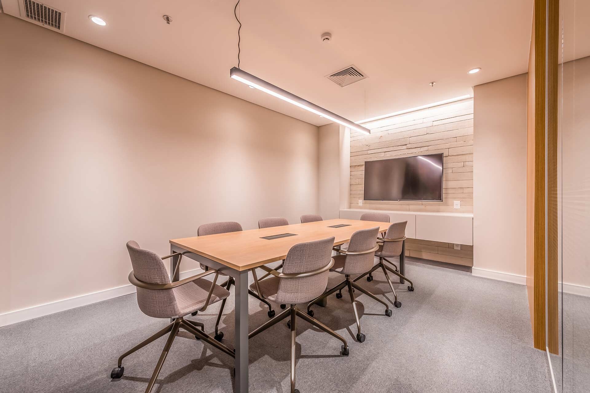 O projeto para os 180m² do escritório corporativo da MRU Invest no edifício DGN 360, em SP, foi desenvolvido pelo T3 Estúdio.