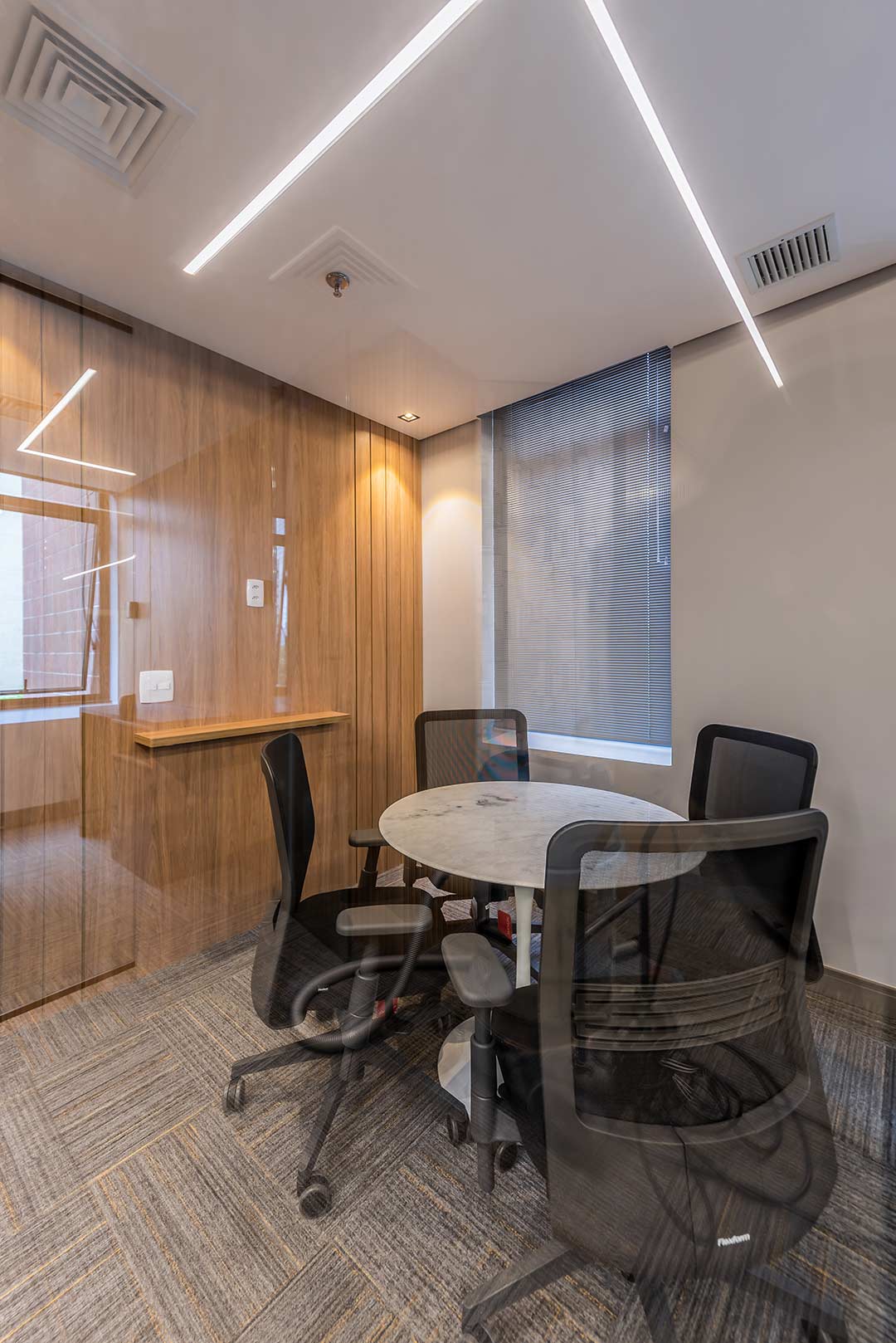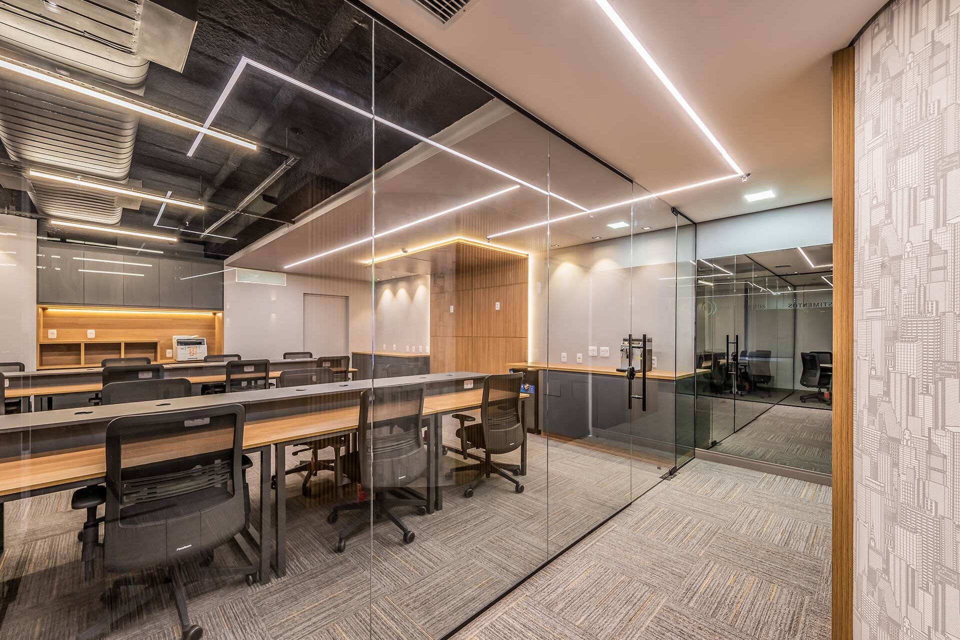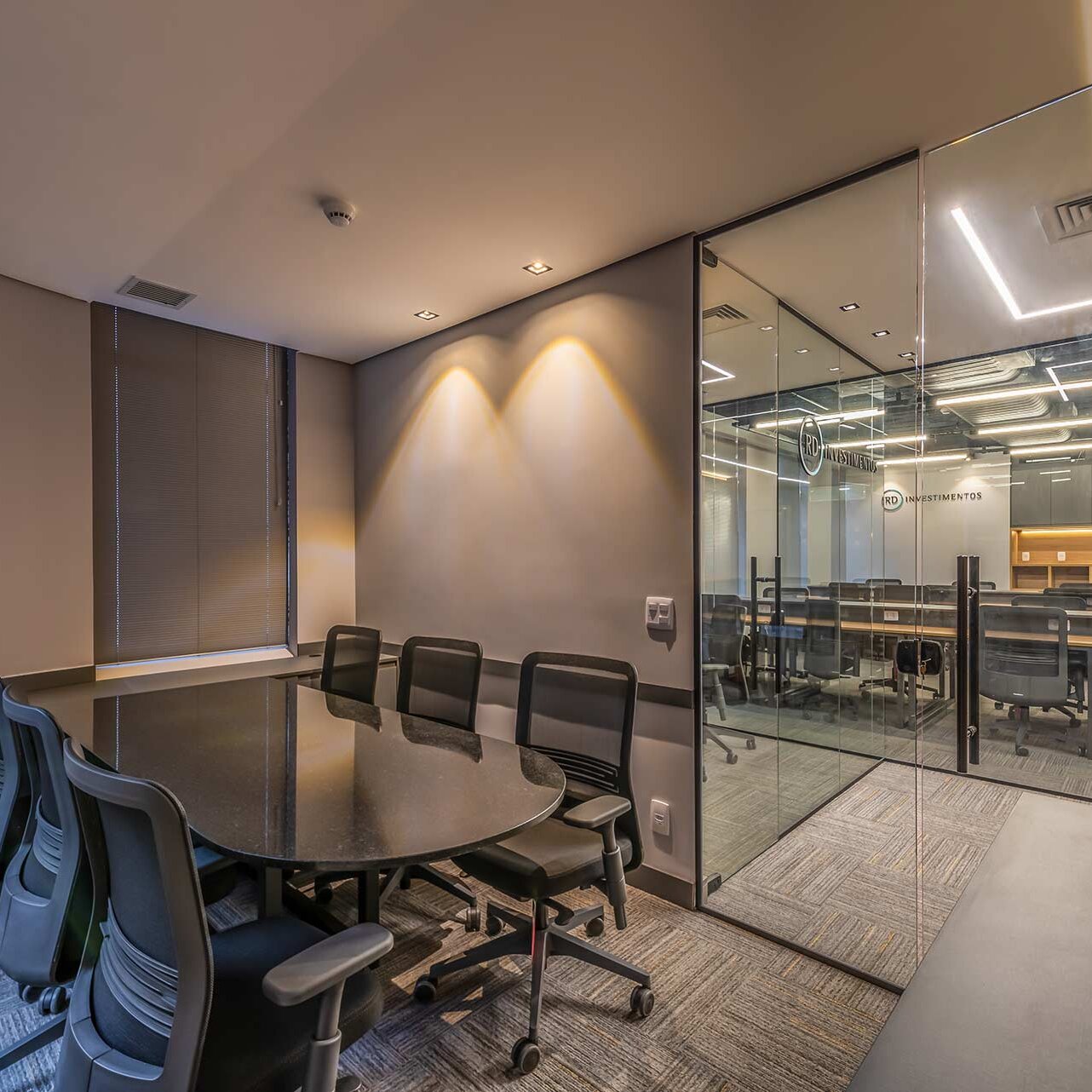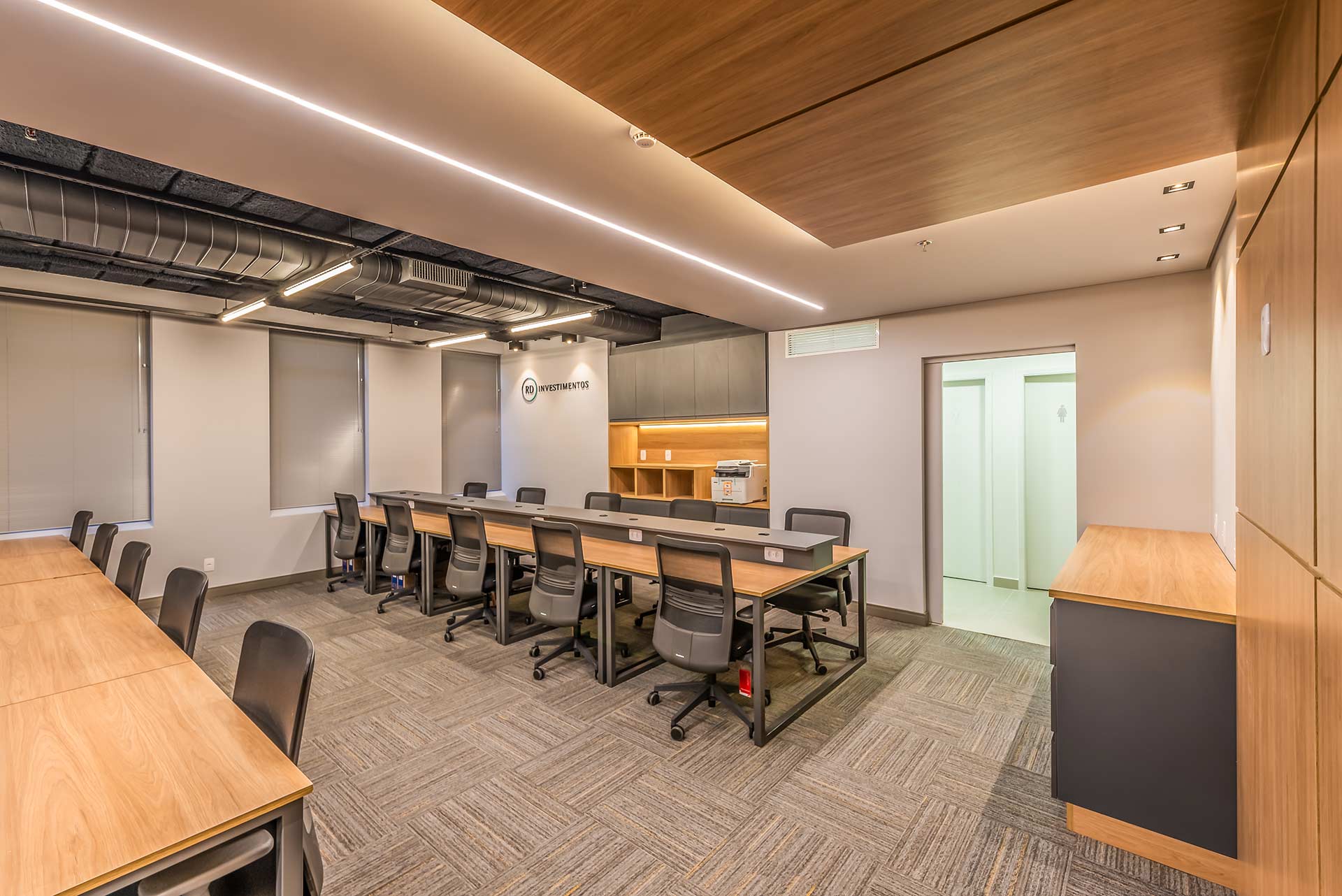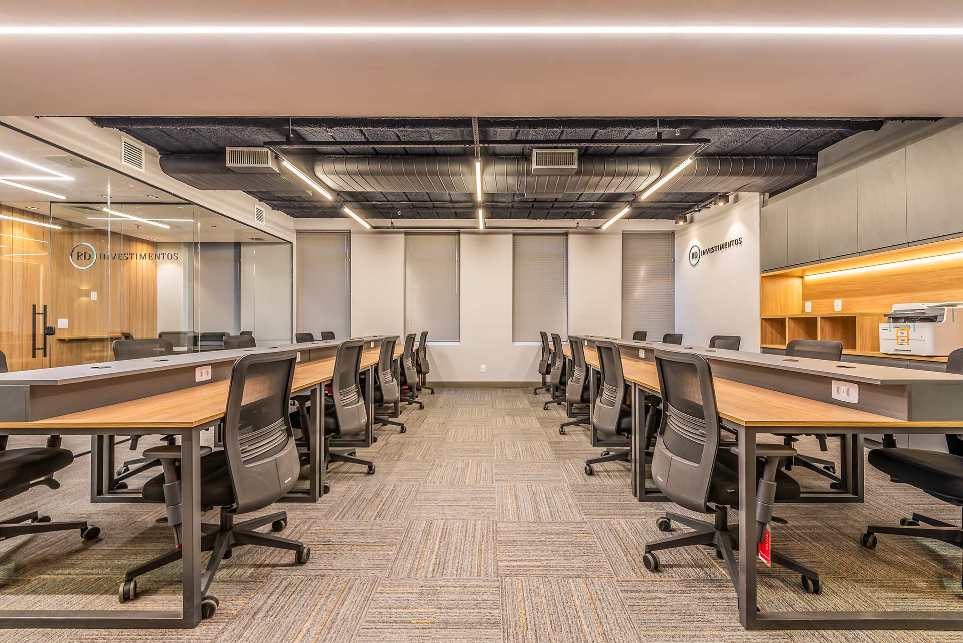 O projeto para os 105m² do novo escritório corporativo da RD Investimentos no edifício Hormino Maia, em SP, foi desenvolvido pelo escritório Matheus Duarte Arquitetura.