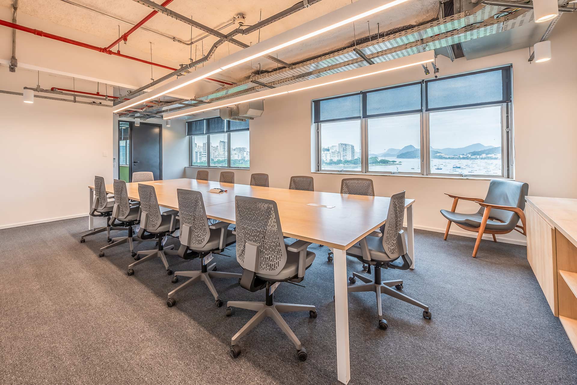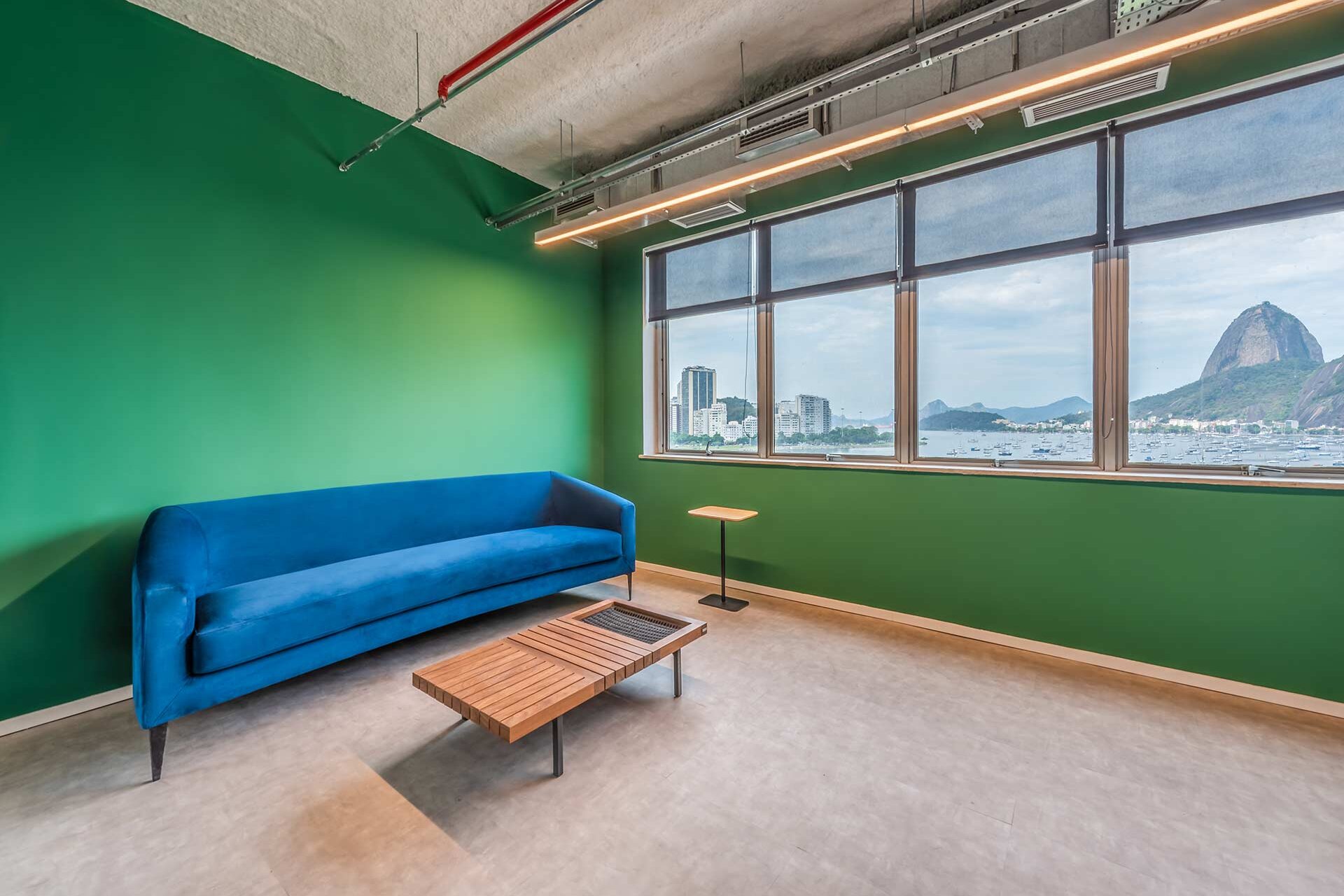 O escritório de 2400m² foi projetado pela Athie Wonrath, e conta com uma vista privilegiada da orla carioca.
