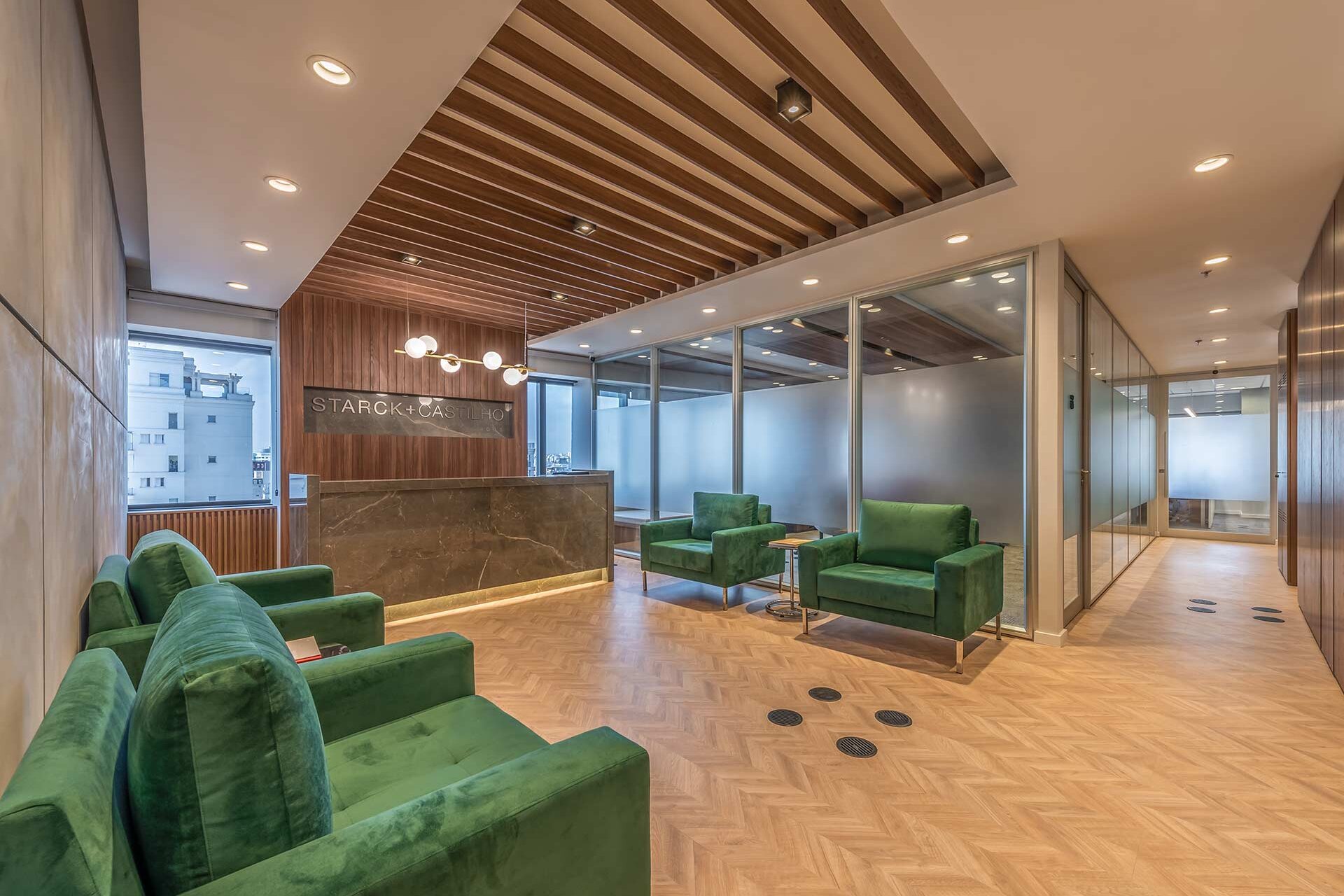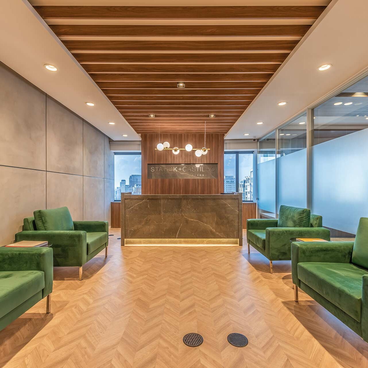 O projeto para os 210m² do novo escritório da Starck+Castilho no edifício Spazio JK, em SP, foi desenvolvido pela Pitá Arquitetura.