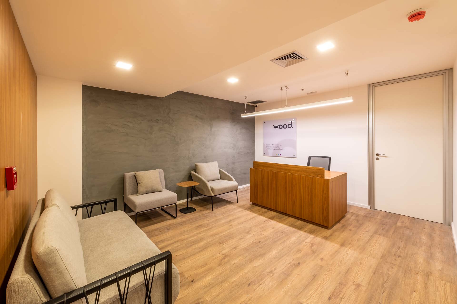 O design dos 1500m² do escritório corporativo da Wood no Passeio Corporate, no centro do Rio de Janeiro, foi desenvolvido pelo Pitá Arquitetura.